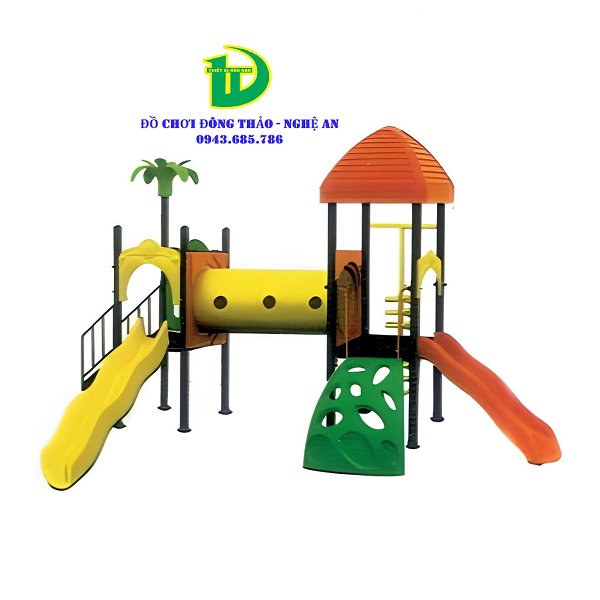 Nhà chơi liên hoàn 2 khối ống chui D161 – Thiết bị sân chơi cộng đồng Nghệ An